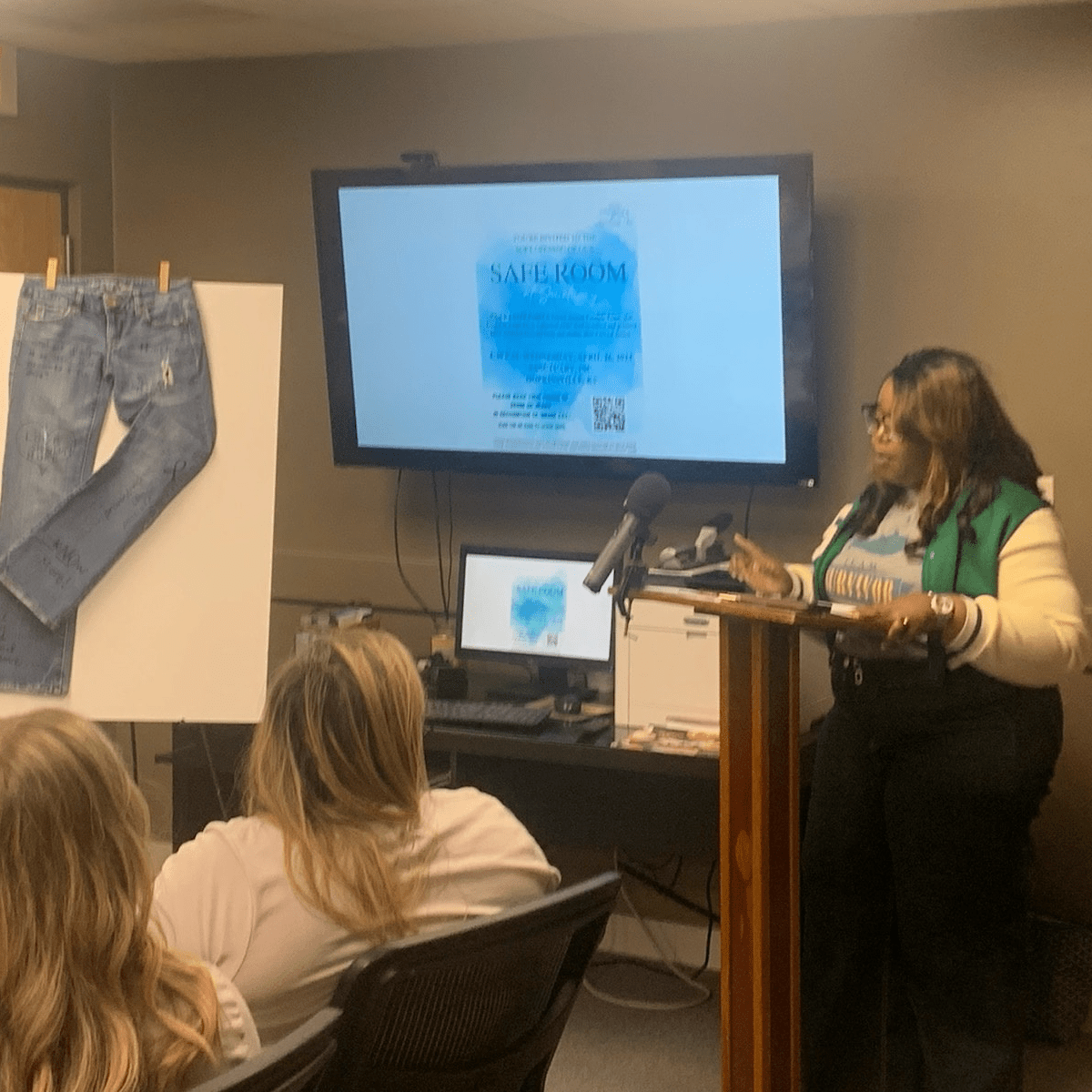 - Sanctuary communications and community engagement coordinator Zirconia Vansauwa welcomes guests and thanks board members for making the SAFE Room a reality.